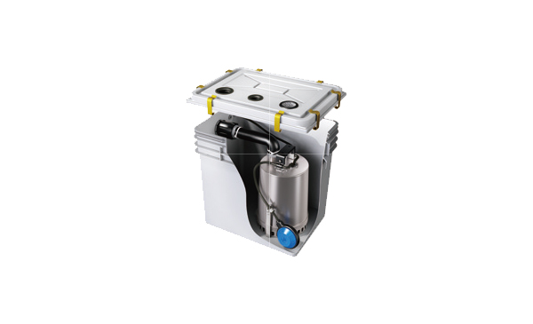 ①、高密度聚乙烯材質箱體:用于收集生活污水等。箱體最大容積33L, 內置澤尼特Steel系列水泵。安裝簡單檢修方便。
